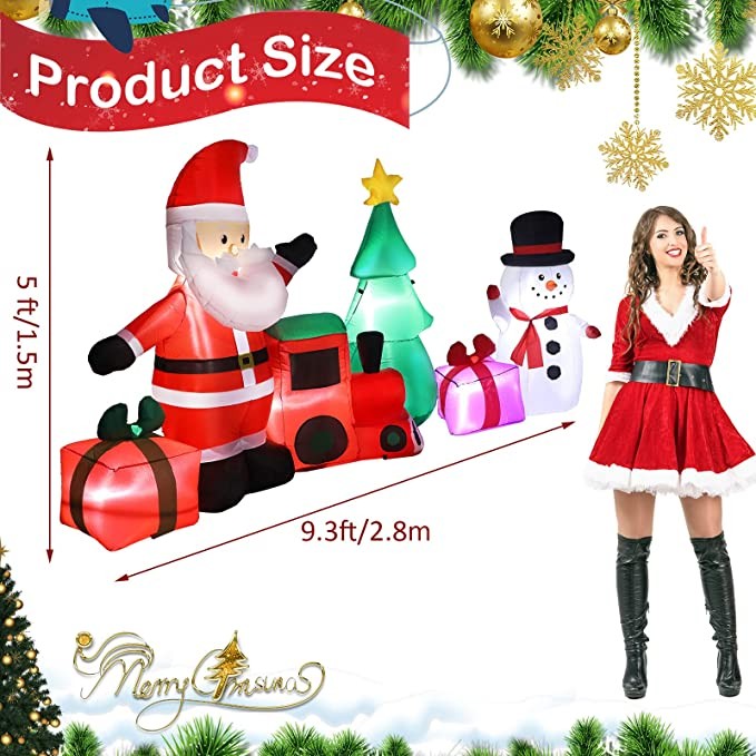 Christmas Inflatable Decorations Inflatable Snowman Christmas Tree Outdoor Decor Inflatable Santa Claus Train Yard Decor with LED Lights Fasten Ropes for Holiday Yard Decor, 9 Feet Wide