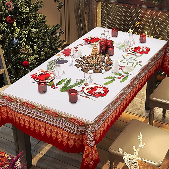 Christmas Printed Fabric Tablecloth ,Oil-Proof and Waterproof Rectangle Table Cloth, Durable and Decorative Table Cover for Christmas and Thanksgiving