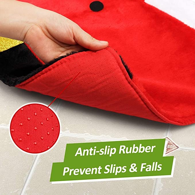 The red color is just perfect for a Christmas mood. When you have it all placed out it looks like a santa clause! Bring much more fun. Great addition for your Christmas and decorated for the holiday. Have your bathroom ready for the season with our unique and adorable toilet seat cover and rug set. It absolutely looks great in the bathroom. A must buy for bathroom décor.