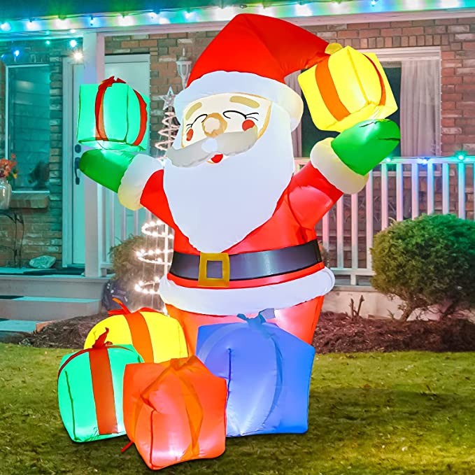GOOSH 6.1 FT Height Christmas Inflatables Outdoor Smiling Santa Claus with Present Boxes, Blow Up Yard Decoration Clearance with LED Lights Built-in for Holiday/Christmas/Party/Yard/Garden