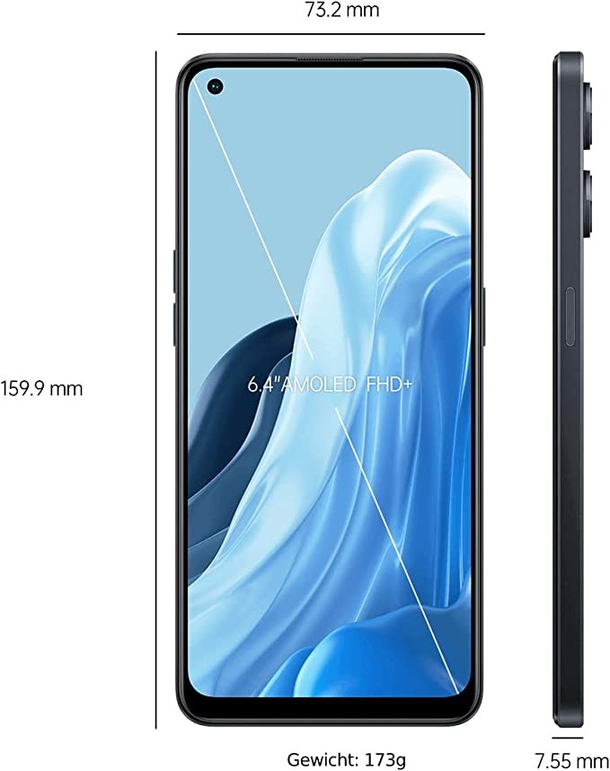 OPPO Reno8 Lite 5G Smartphone, 6.43" AMOLED Display, 64 MP Triple Camera, 4500 mAh, 33W SUPERVOOC, Snapdragon 695, 8 GB RAM, 128 GB ROM, Cosmos Black