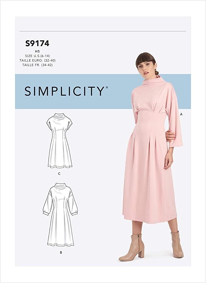 SIMPLICITY SS9174U5 U5 (16-18-20-22-24) Ladies Knit Dress Length with Funnel Neck Long, 3/4 or Short Sleeves